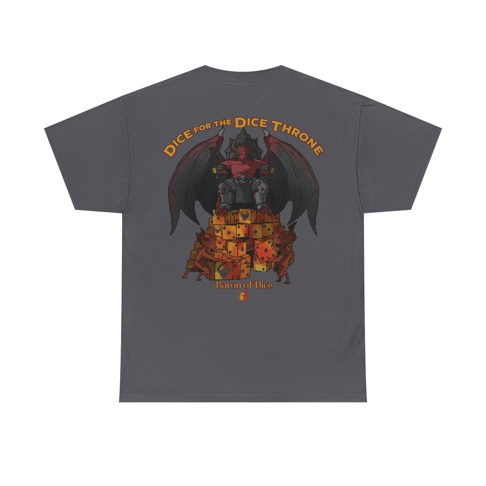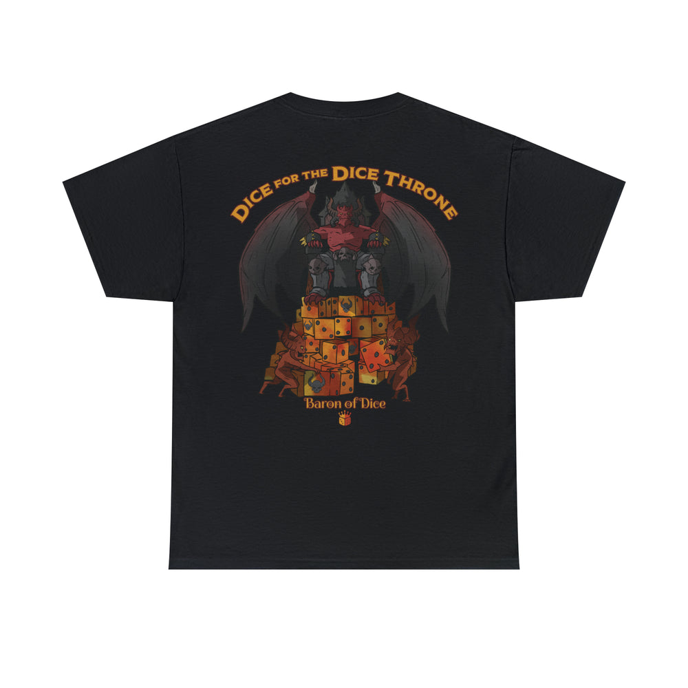 Designs are on the backside of each shirt. Wear the shirt that others will envy, DICE FOR THE DICE THRONE!!!