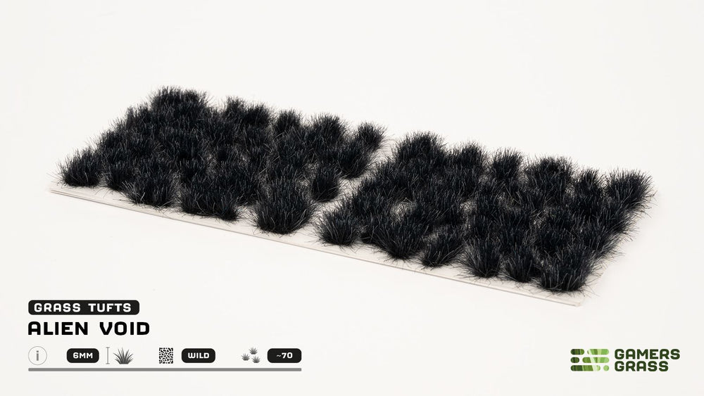 Tufts with a dark black color. Perfect to enhance contrast, or to create night and sinister atmospheres. They will help to conjure a realm of malevolence and mystery, where light is absent and creatures lurk in the shadows. Alien Void tufts are sure to transport your miniatures into darkness.