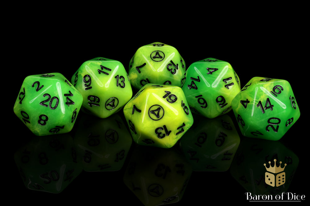 Step into the world of the Tohaa Army with the Infinity Tohaa Official Dice Set! These six oversized D20s are not just dice; they are your gateway to the fierce battles and strategic maneuvers. Each 22mm die is meticulously crafted from premium resin, with ethereal green and glow in the dark swirls, revealing pure black symbols. When you roll these dice, you’re not just playing a game—you’re channeling the spirit of dice themselves, with every outcome steeped in the rich lore of the Tohaa's relentless pursuit of freedom and honor.