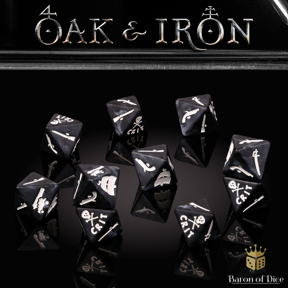Our officially licensed Oak & Iron dice set is ready to unleash a full barrage! Each set contains x10 country themed D8 dice inside a reusable metal tin.