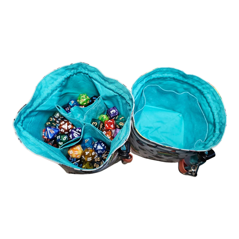 Adorned with vibrant rainbow D20s and the "Roll With Pride" banner, this bag is more than just a storage solution—it’s a symbol of inclusivity, unity, and celebration within the gaming community. Ready for action, it stands proudly beside you, making your gaming experience both beautiful and organized.