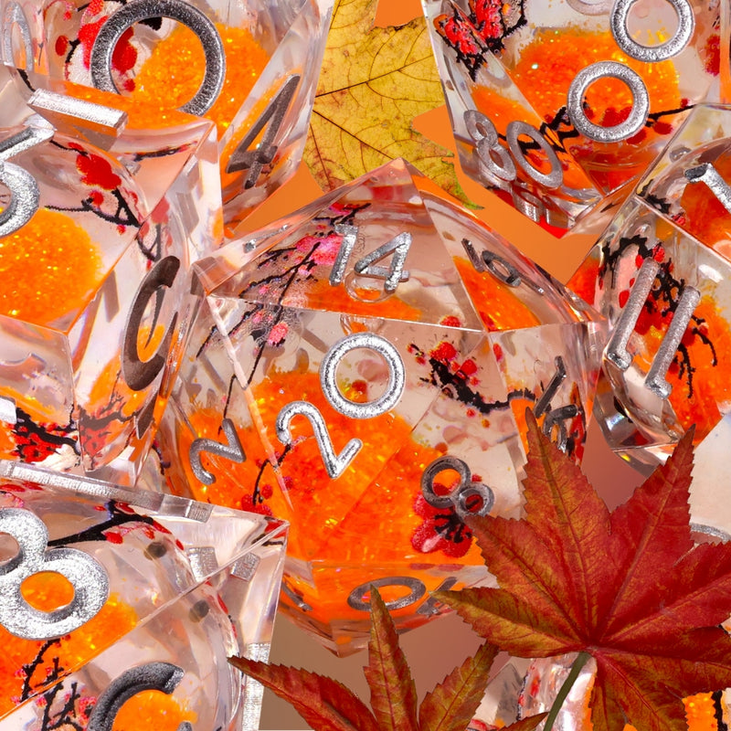 Autumn Cherry Blossom Liquid Core RPG Dice Set - 7 Pieces