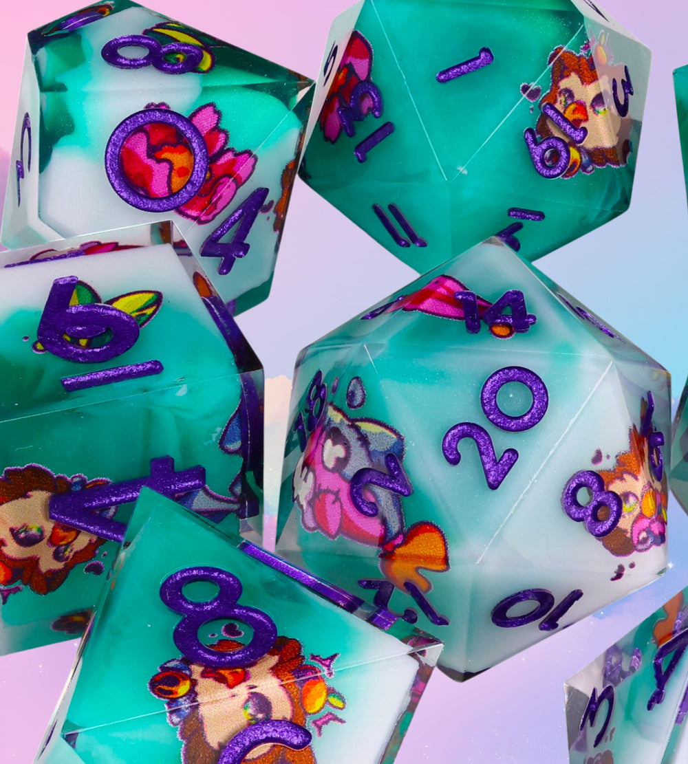 Summer Butterfly Liquid Core RPG Dice Set - 7 Pieces