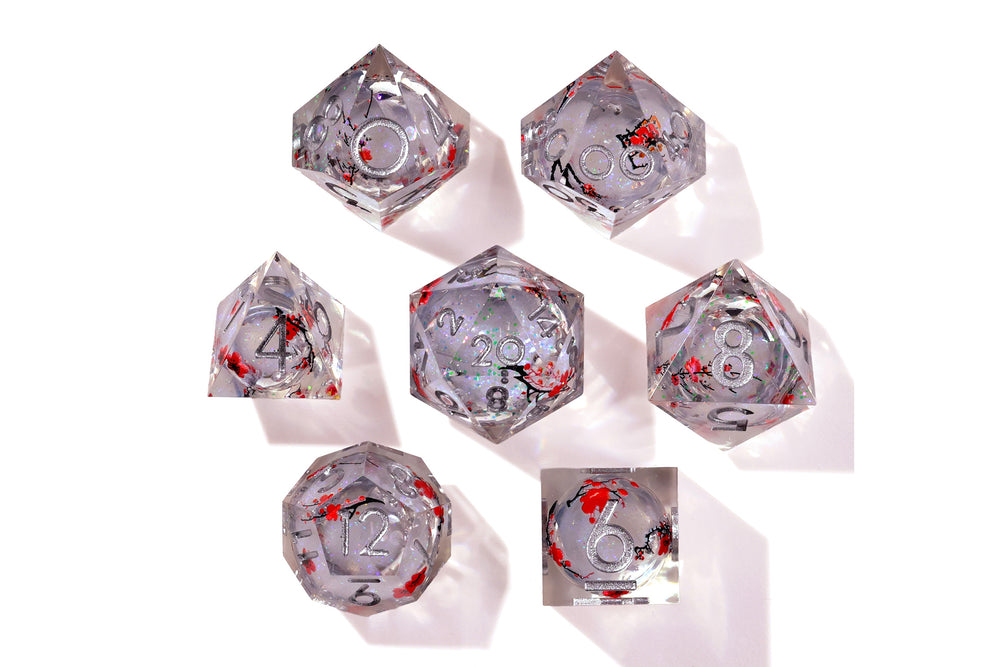 Winter Cherry Blossom Liquid Core RPG Dice Set - 7 Pieces