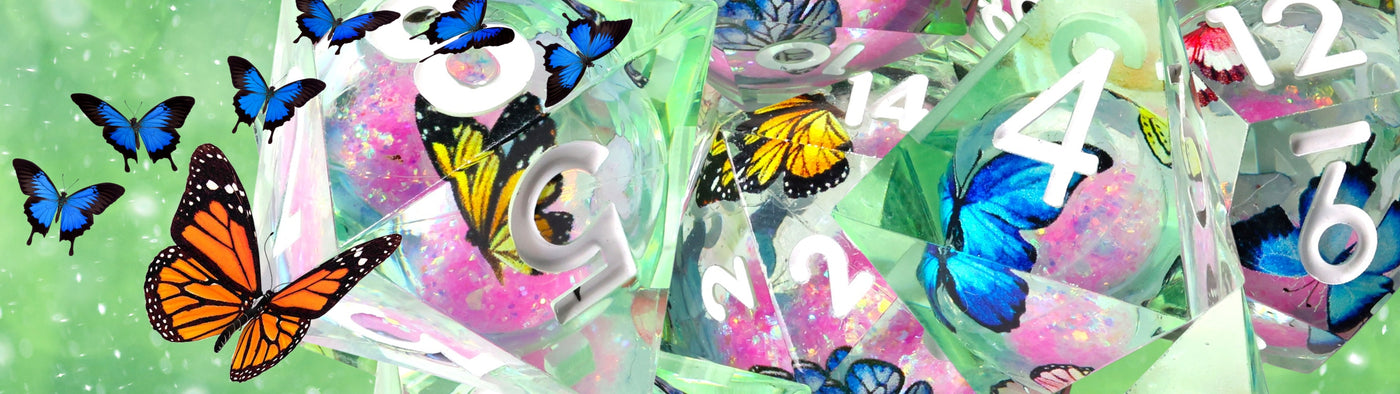 Summer Butterfly Liquid Core RPG Dice Set - 7 Pieces