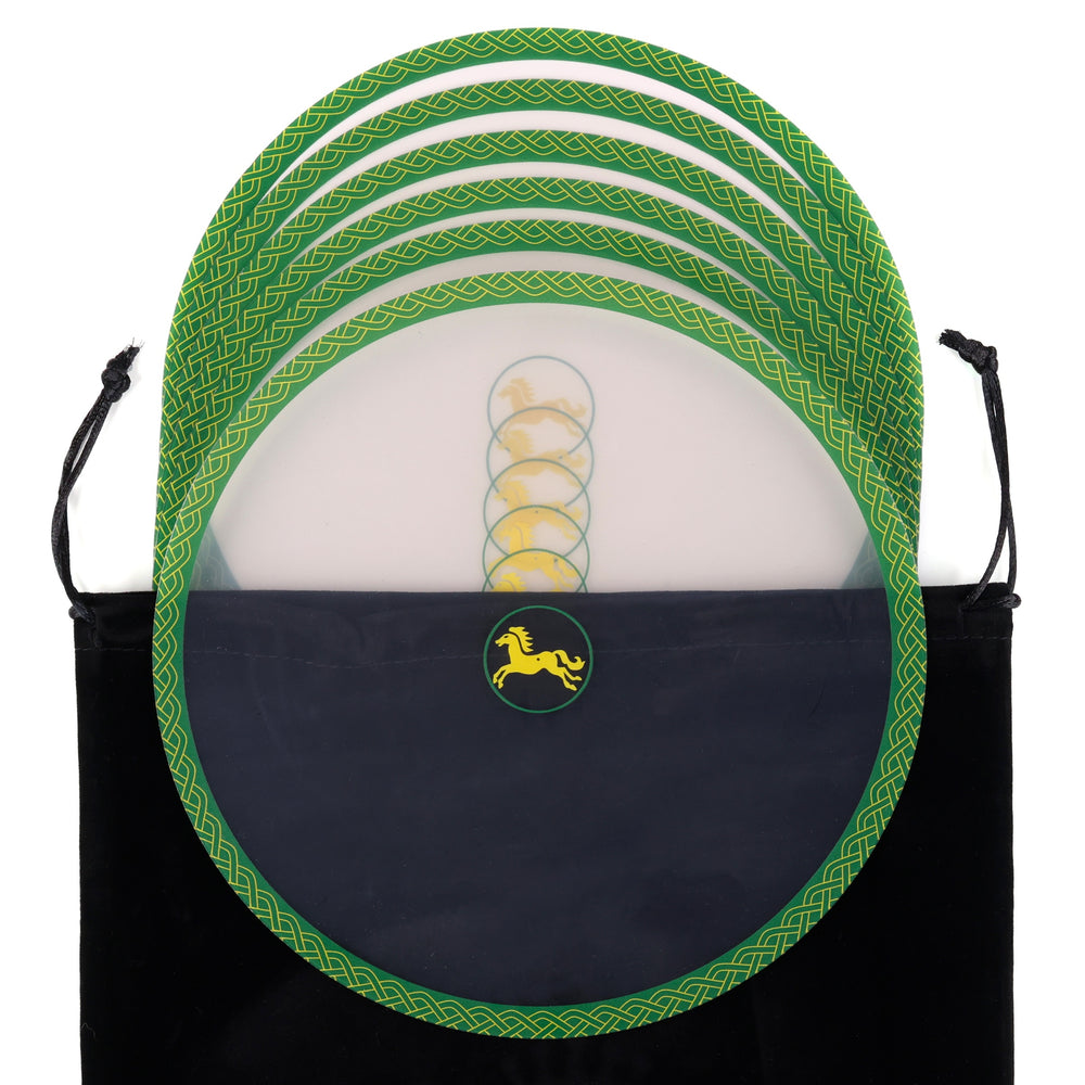 Let's discuss measurements!  Starting in the center, there is a 1mm translucent circle, this is your "pinpoint" hole for placement on your game table, essential. The circle around measures exactly 25mm to mark an objective token within the Middle Earth tabletop wargame system. Outside, the marker diameter is exactly 177.4mm, letting everyone know they have reached the objective. This completes a 25mm inner circle and 3 inches from that inner circle. If you touch that line, you are in! Simple, effective, and clear.